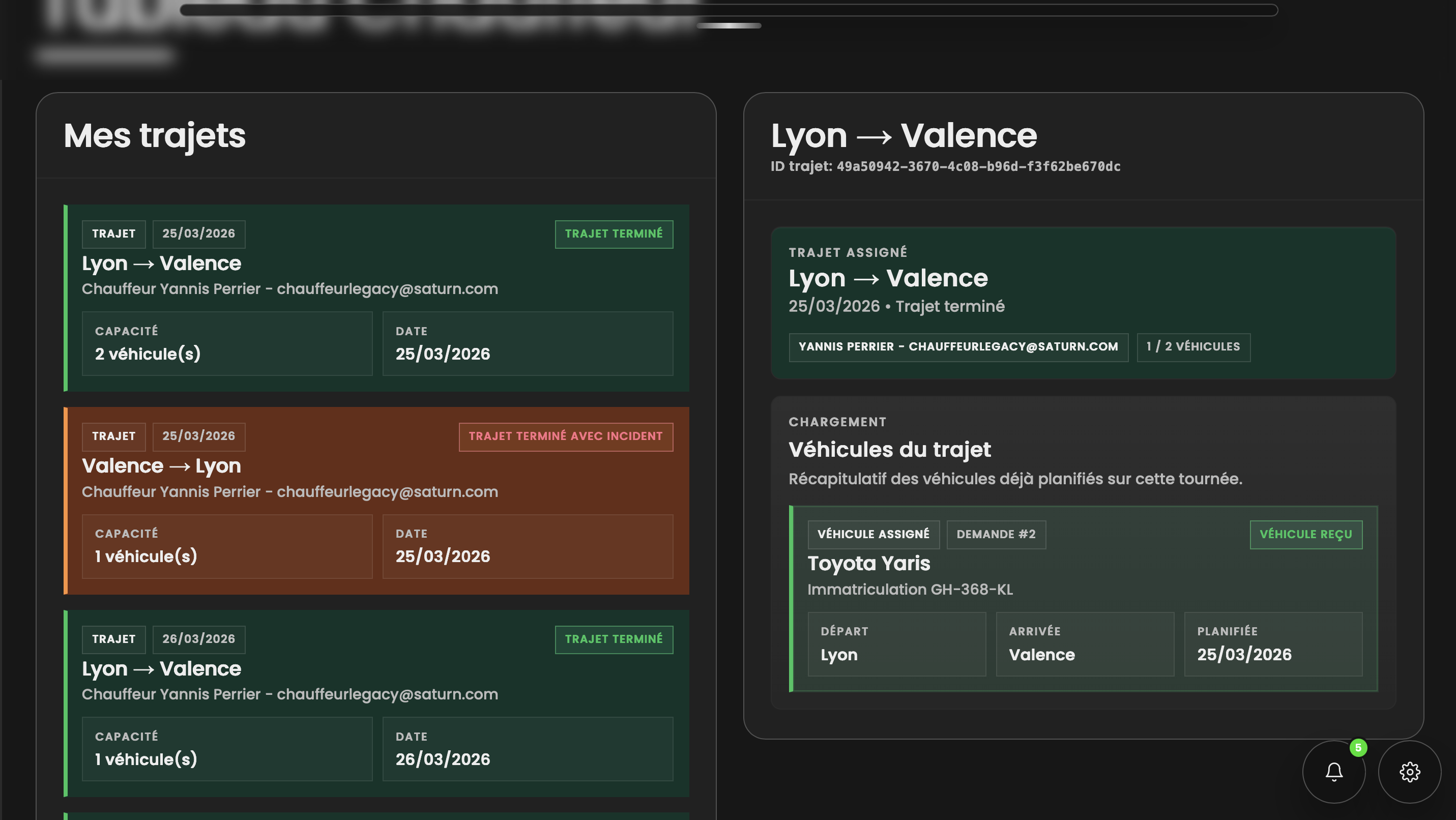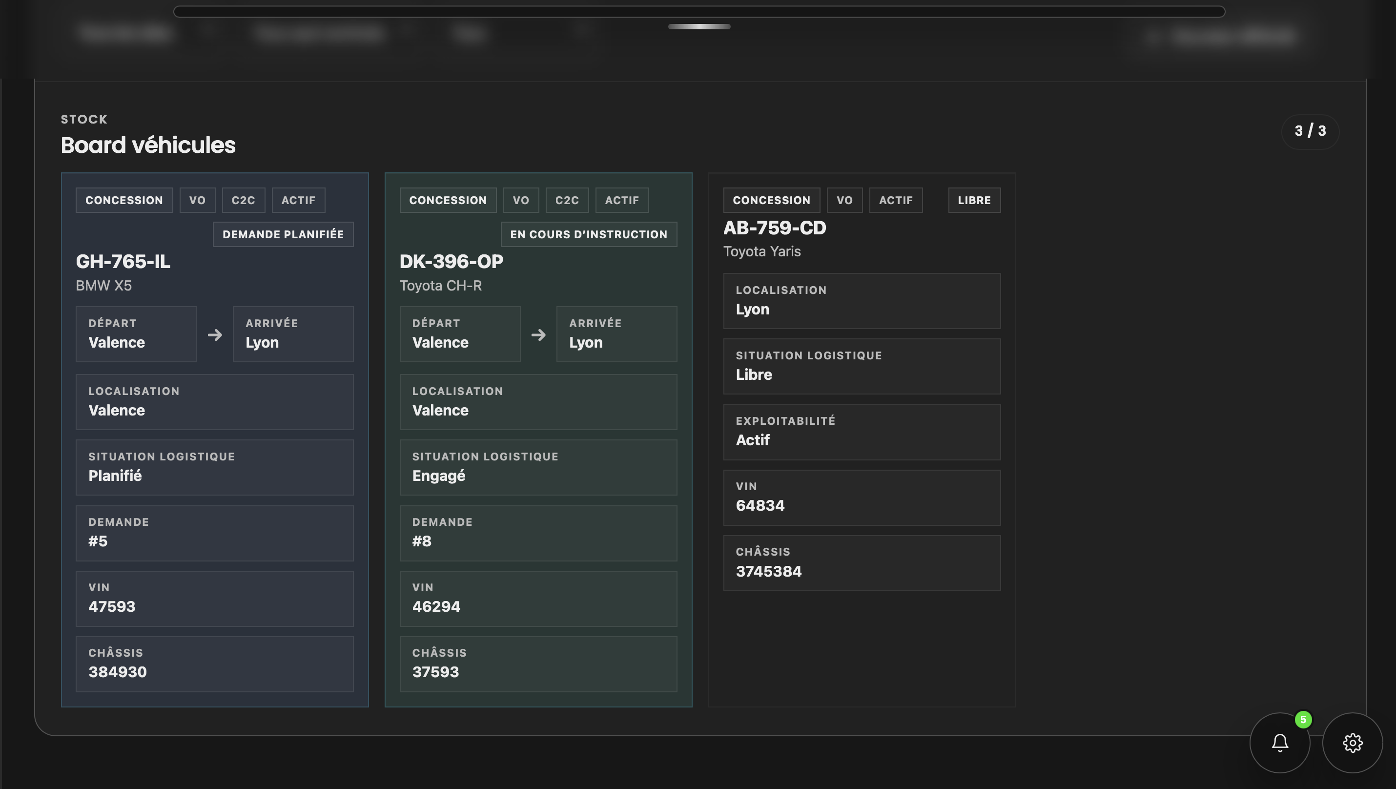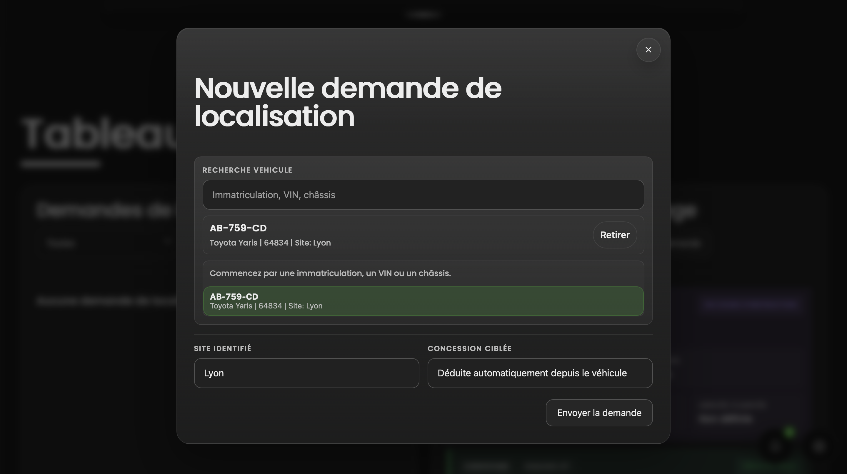 Conçu pour des concessions automobiles. Chaque véhicule, tracé. Chaque livraison, confirmée.