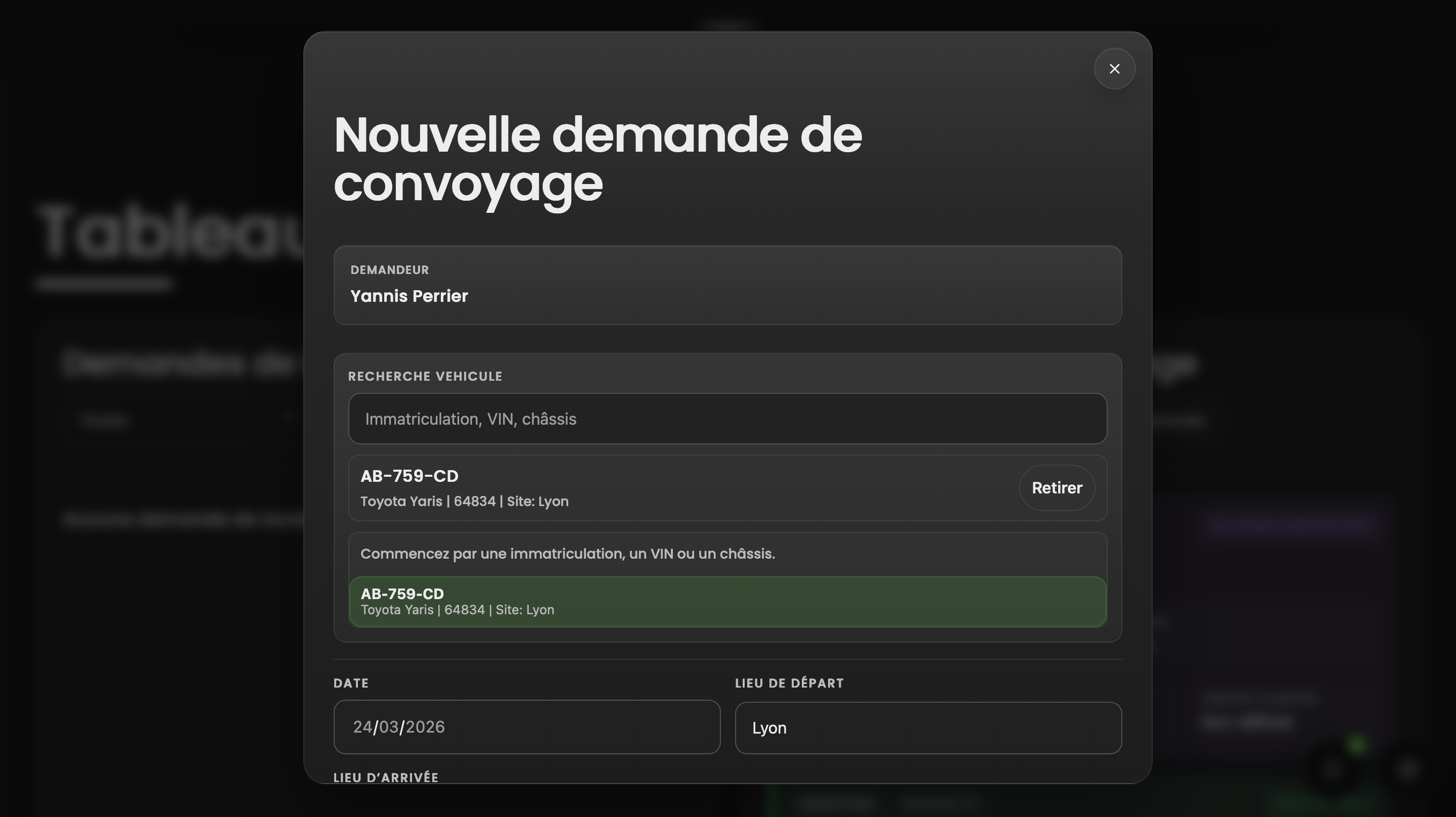 Crée une demande de convoi depuis sa concession et suit son avancement jusqu'à la livraison. Sans passer par personne.
